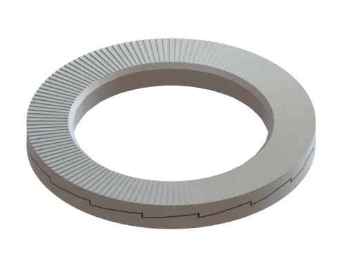 A tecnologia de travamento por cunha garante a fixação de juntas parafusadas por meio de tensão, em vez de dependência do atrito. O sistema consiste em um par de arruelas de travamento com cunhas internas e dentes radiais externos.
