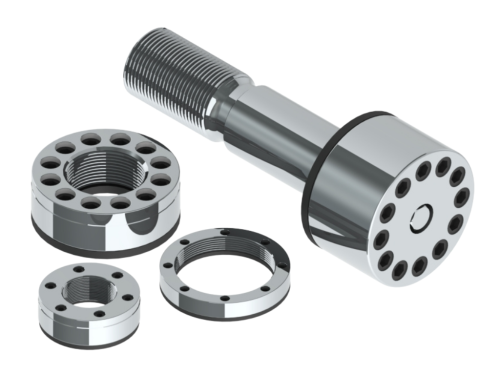 - Ao apertar os jackbolts, uma forte força de compressão (axial) é gerada. Esta força de impulso é direcionada contra a arruela endurecida. Os jackbolts possuem um pequeno diâmetro de atrito e, portanto, podem gerar uma alta força de compressão com relativamente pouco torque aplicado.